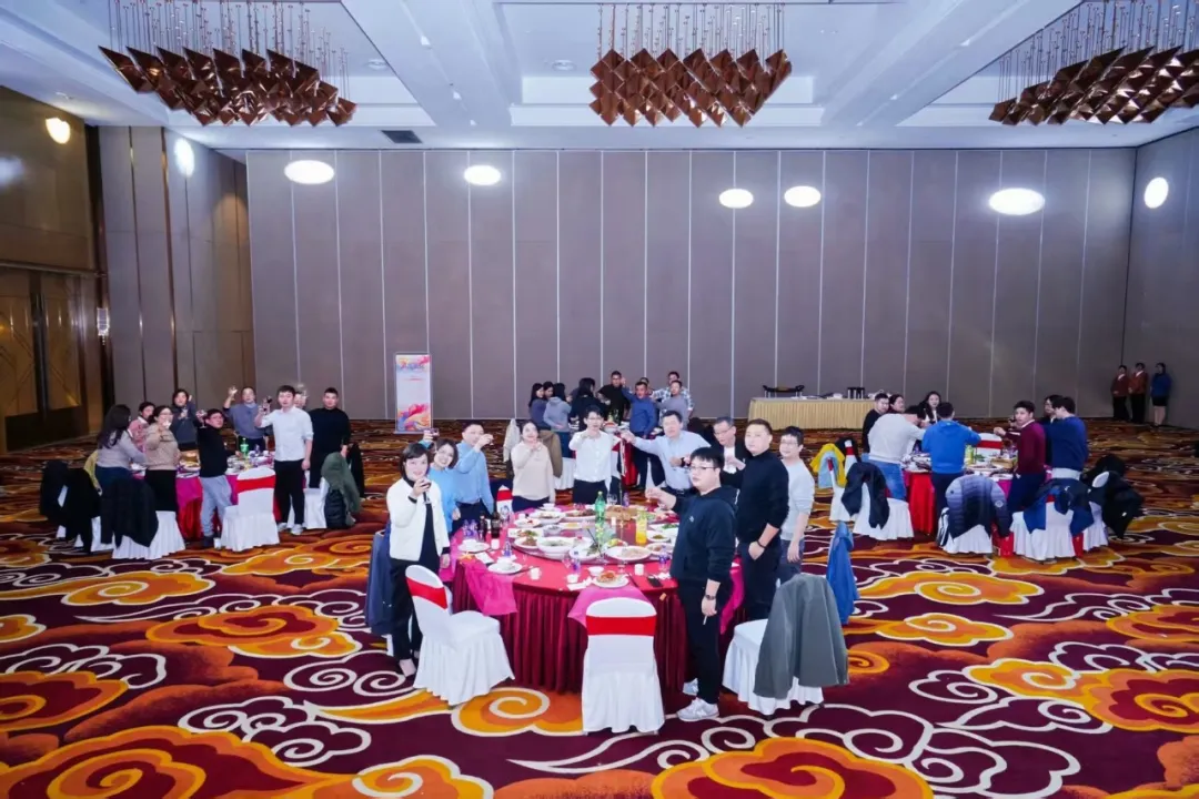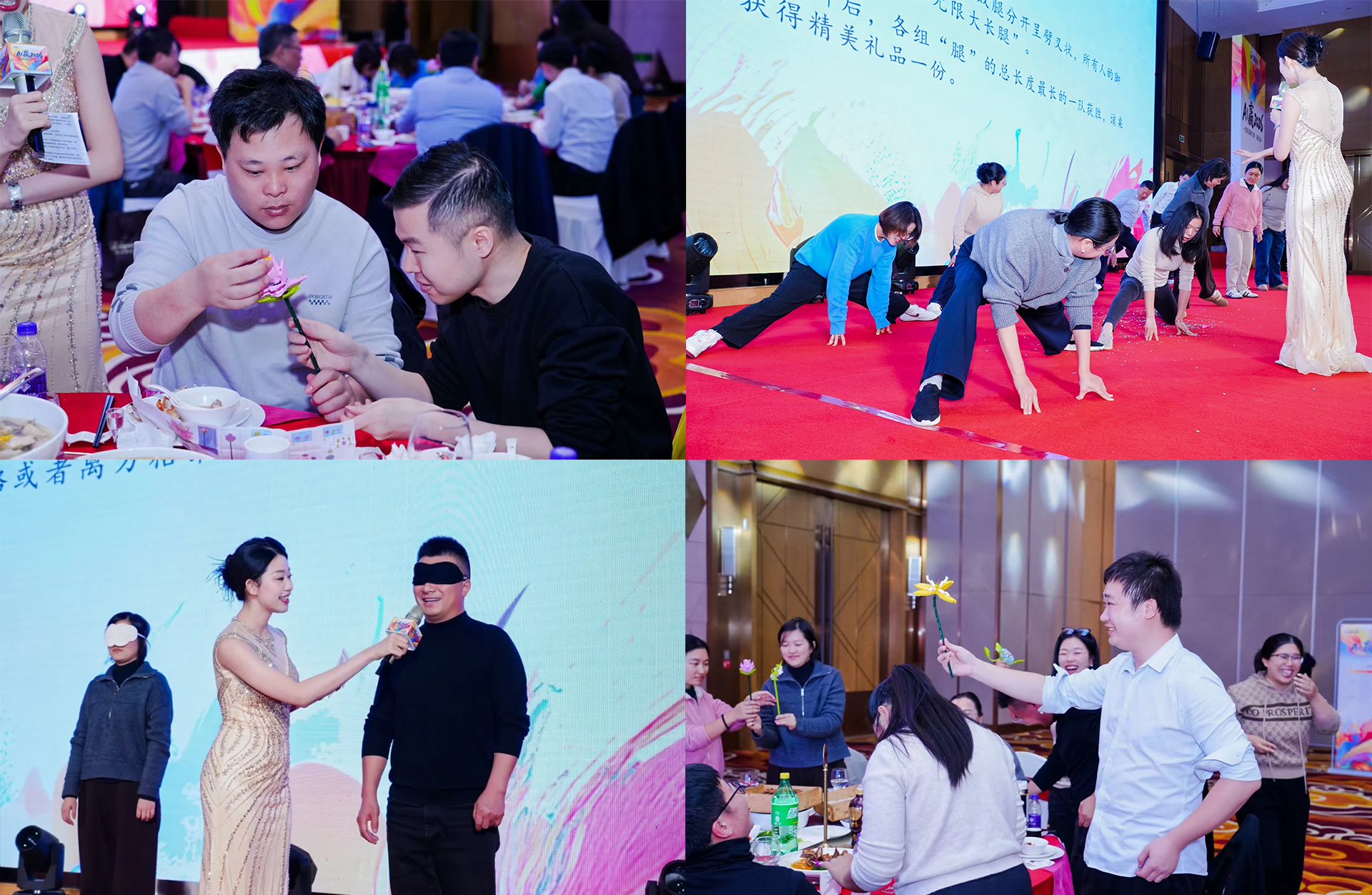 現(xiàn)場,精彩紛呈的節(jié)目表演、緊張有趣的互動游戲與多輪驚喜抽獎輪番上演?!斗e木拼搭》、《無限大長腿》、《蒙眼踏步》等游戲妙趣橫生,大家在協(xié)作中增進(jìn)默契,歡聲笑語不絕于耳。幸運(yùn)抽獎環(huán)節(jié)更是驚喜連連,不斷點燃現(xiàn)場的氣氛,彼此的情誼也在觥籌交錯間愈發(fā)深厚。